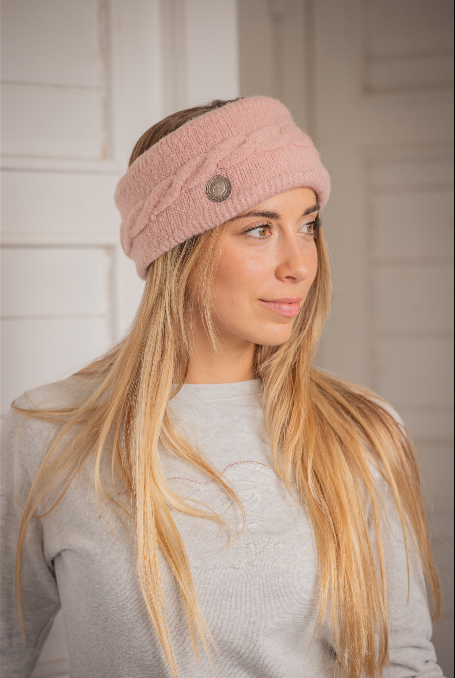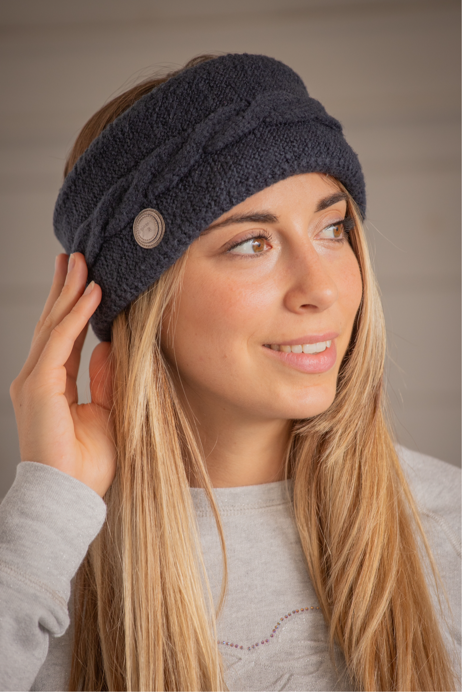 The sporty and fancy accessory to spend the winter with warm ears ! Our Mel headband is knitted with a super soft thread and lined with even softer fleece. On the left side, there is a small faux leather patch. A gorgeous large braid is decorating the headband.
